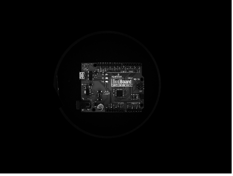 The left column of Table 1 shows images that were captured using the 6mm C Series Fixed Focal Length Lens at a working distance of 200mm and the right column images were captured with the 25mm C Series Fixed Focal Length Lens at a working distance of 750mm to maintain the same magnification and field of view. The darkfield ring light evenly illuminates the objects and highlights surface defects such as the scratches on the metal gear (Panel D). Compared to a brightfield ring light, the darkfield ring light provides a uniform illumination profile for reflective surfaces like the printed circuit board (PCB, Panel E). It also works exceptionally well with diffuse objects like paper and a matte label on the medicine vial (Panel A). One important thing to note with a darkfield ring light is that it must be close to the object (~50mm) to achieve proper illumination. This may be difficult for wide angle imaging lenses as the ring light itself will be imaged if the inner diameter of the light is not large enough.