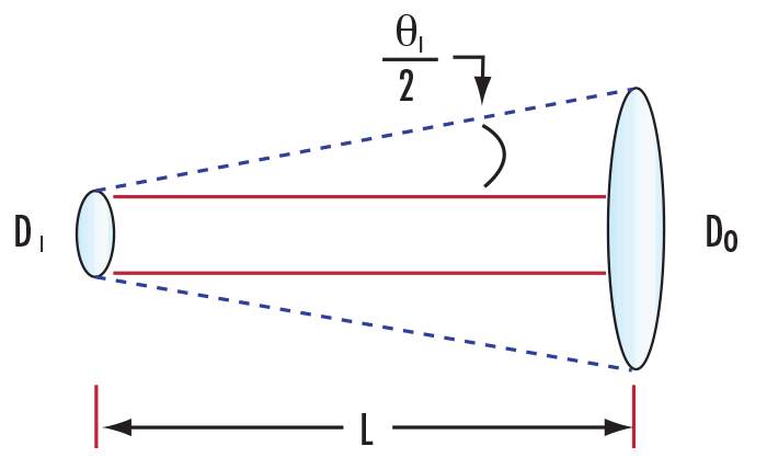 $$ D_O = D_I + 2 \left[ L \cdot \tan{\left( \frac{\theta _I}{2} \right)} \right] $$